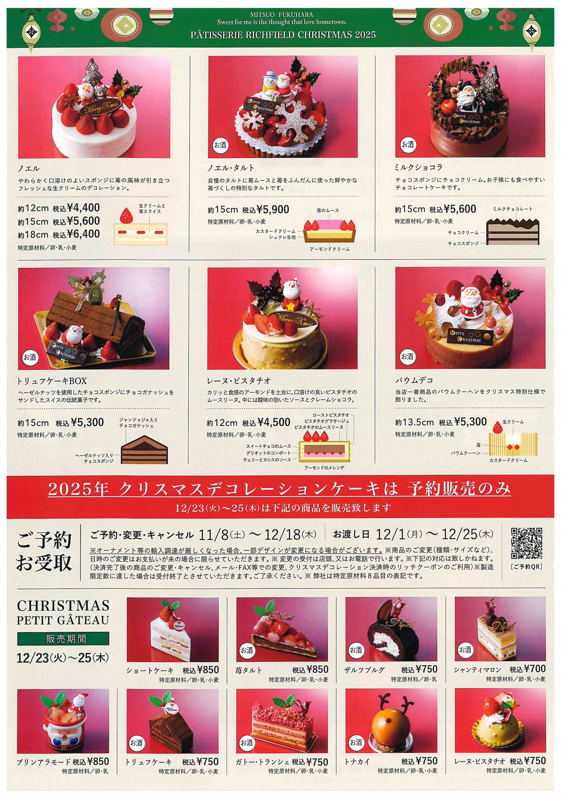 2025年11月8日(土)より、クリスマスケーキの予約が始まります。