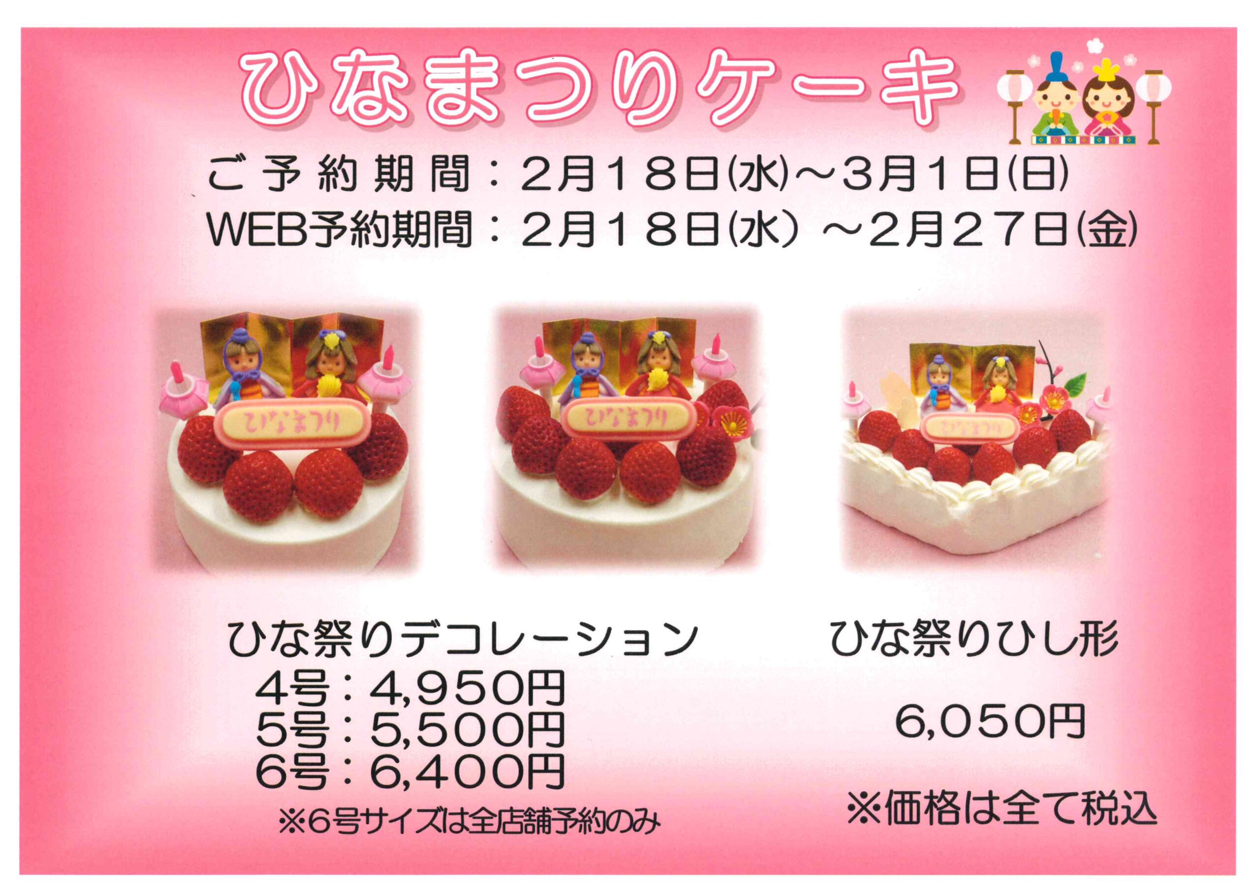 ひな祭りケーキのご予約が2月18日(水)から始まりました。
